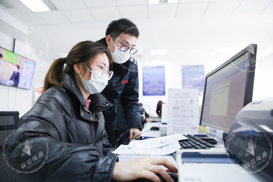 国家税务总局如皋市税务局工作人员在进行"一对一"的服务。