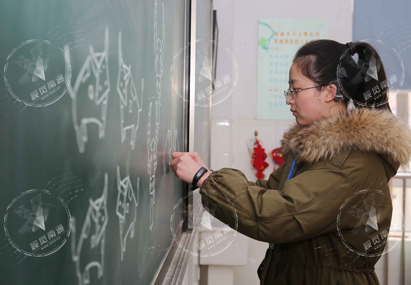教务处副主任刘怡介绍,唐诗后天因药物致聋,从小在学校学前康复班开始就读,一直到现在,“她天资聪慧,学习能力突出,书法、绘画、舞蹈均是特长。”两年前,聋人美术老师张焕带着唐诗去上海,找到会双手画绝技的张瑞棋老师。张老师手把手教唐诗双手画技法。