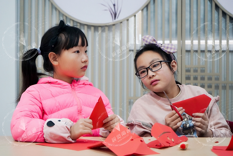 活动中,南通非物质文化遗产——南通剪纸传承人李海烽老师介绍了“剪纸”技艺的历史沿革、款式分类、制作技巧、用途分类等知识。随后,孩子们在李老师的指导下进行折叠、画线、剪纸等工序,他们一边轻声交流,一边认真制作,当一张张红纸经孩子们的小手变成一幅幅灵动的剪纸作品时,孩子们体验到了无穷的乐趣。小小的会议室里,藏不下奔腾涌动的中国传统文化之生命气息。
