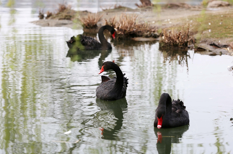黑天鹅是一种大型游禽,原产于澳洲,是天鹅家族中的重要一员,为世界著名观赏珍禽。黑天鹅栖息于海岸、海湾、湖泊等水域,成对或结群活动,食物几乎完全是植物,包括各种水生植物和藻类,偶尔也吃昆虫。黑天鹅具有较强游牧性,迁移模式不规律,主要取决于气候条件,迁徙时会组成成千上万的大团体。