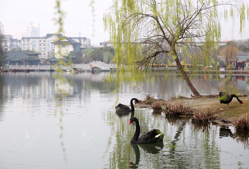 三月春色何许?应是“网红”黑天鹅濠河戏水