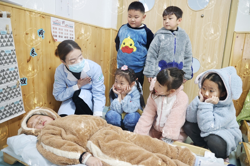 在当天的活动现场,“家诚无忧”志愿服务队的医务人员志愿者从幼儿喜闻乐见的故事为切入点激发幼儿兴趣,利用观看视频、结合图文向幼儿讲解“健康睡眠”小常识,让幼儿明白睡眠的重要性,掌握一些睡前的注意事项。如:睡前不做剧烈的运动,不过度兴奋,不暴饮暴食等。引导掌握正确的睡眠姿势,学习健康入睡的方法。随后再手把手地教孩子们学习正确的睡眠姿势,即右侧卧姿势最合适,尽量不要趴着睡等。让孩子们从小养成良好的睡眠习惯。