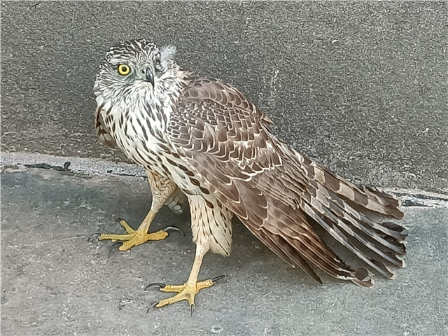 吴老师这时立刻通过百度查询,发现这只受伤的猛禽类似隼或苍鹰,属国家保护动物。吴老师说:“由于担心它继续待在那里会饿死,所以我立即将现场情况拍照发给对鸟类有研究的县教体局美术教研员冯军老师,请他帮忙鉴定,并寻求帮助。”冯老师得到消息后,马上联系如东县野生动物救护站。