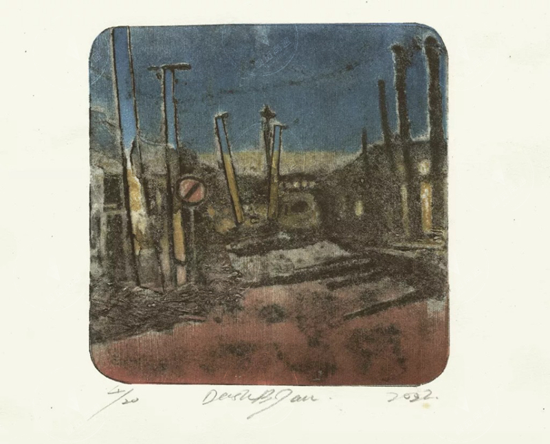 “创作灵感源于吕四渔港的一次采风活动,眼前是渔民忙于结网的场景,虽人来人往却并不喧嚣,身后的渔村显得十分静谧,仿佛与世隔绝……”这样的画面在卞云凯的脑海中挥之不去,于是他决定用版画艺术的方式将这一瞬间化作永恒,“通过不同的肌理感塑造出画面的造型美感,画中无一人,却处处关乎人的情感,尽显海边小镇独有的风情。”卞云凯说。