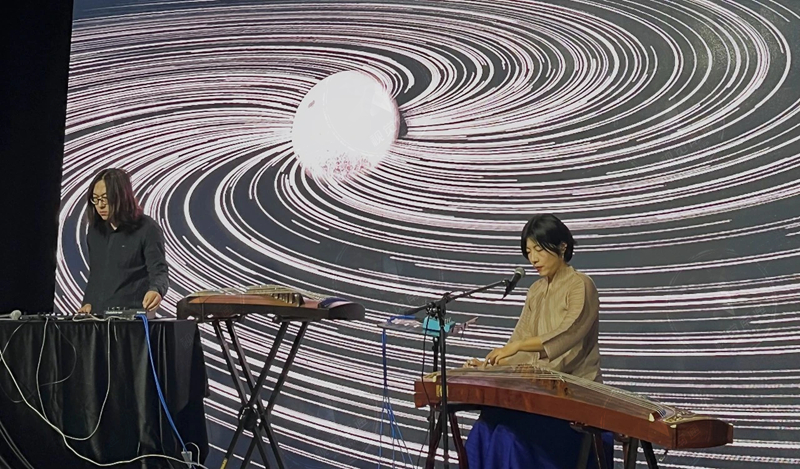 “纤指香凝弦上飞,声声柔情寄琴语。”在音乐会现场,东布洲科学城的签约艺术家、诗意古筝唱作人、国际音乐文化交流者栾思远和独立音乐人关晓檬以“如月如海、浪漫满袖”为主题,给观众们献上了一场融情融景的高品质音乐表演,传统乐器古筝与现代电子乐相结合,再加上演唱和特效,音乐时而舒缓、时而激扬,行云流水,余音袅袅。短短一个小时,近百名观众在唐诗宋词作品以及自创作品中沉浸式、互动式聆听,如痴如醉,回味绵长。