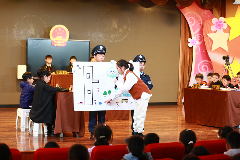 针对屡禁不止的高空抛物行为,孩子们在家长和老师的帮助下,将高空抛物砸伤路人的真实案例进行改编,由四(六)班14名同学通过模拟法庭的方式进行演绎。