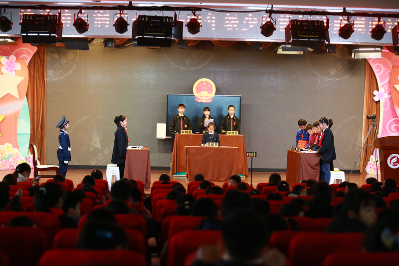 随着一声庄重的法槌声响,“庭审”拉开序幕。参演学生按照民事诉讼程序,进行了法庭准备、法庭调查、法庭辩论、最后陈述等庭审过程。庭审中原告律师义正词严、有理有据,被告律师据理力争、思维缜密,双方当事人积极争辩,审判人员细心询问、公正严明。最终,“审判长”将案件处理结果进行了公开宣判,让同学们“零距离”感受了违法行为带来的危害,以及将面临的法律制裁。