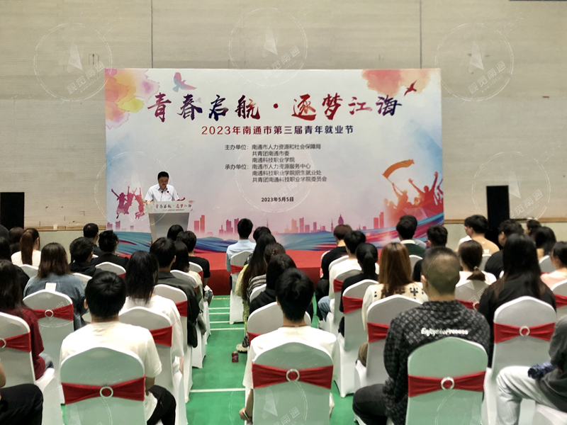 5日上午,由市人社局、团市委联合举办的“青春启航·逐梦江海”2023年南通市第三届青年就业节大型公益活动,在南通科技职业学院正式启动。这也是青年就业节首次走出市场、走进校园,零距离为在通高校青年学子解决就业及见习难题。