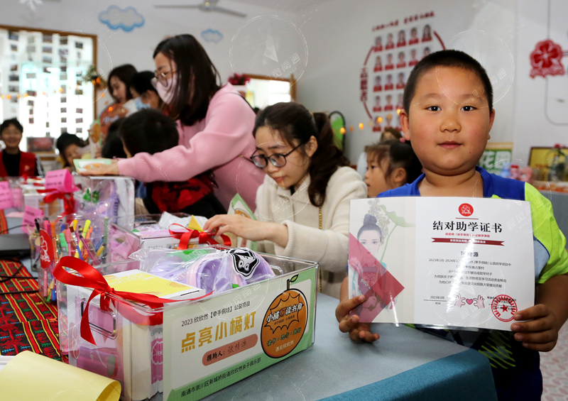 16个亲子家庭为刚结对的占里吴贞依歌队侗娃们精心准备了小橘灯(台灯)、T恤衫、裙子、洞洞鞋等儿童节礼物,价值3000余元。活动中,亲子家庭为侗娃们书写儿童节家书,为捐赠的图书贴标签。年逾古稀的退休教师孙福银还特意为活动创作歌曲《小橘灯》。