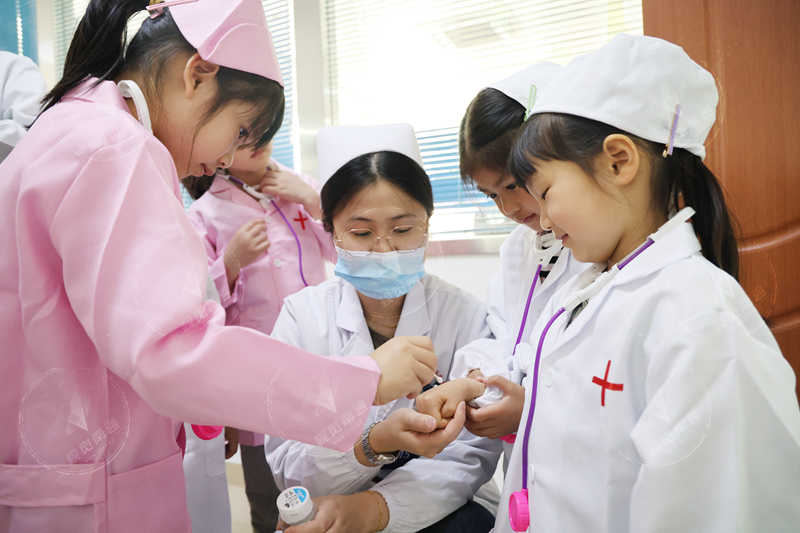 俗话说“纸上得来终觉浅,觉知此事要躬行”,幼儿园的孩子们对于护士的书本印象多是打针、打点滴,其实她们的工作远比这些要繁重复杂得多。活动一开始,社区卫生服务中心的沙护士长通过生动的故事向孩子们科普了护士节的来历,让孩子们认识护士这个职业的显著特征。紧接着,化身“小护士”的萌娃们在护士阿姨的带领下逐个参观各个科室,对于这群孩子来说,和医护人员、病患近距离是一件既充满新奇又饱含挑战的事情。体验环节,幼儿们在护士阿姨的指导下开始角色扮演,他们学得有板有眼,对患者询问病情仔细,护理时细心温柔,把“白衣天使”的形象诠释得淋漓尽致,有幸参与的爷爷奶奶也很享受“被护理”的感觉。“现在的小孩子真的很聪明,一学就会、一点就通,还特别的有礼貌。”参与社区老年人免费体检的马福生爷爷笑着说。