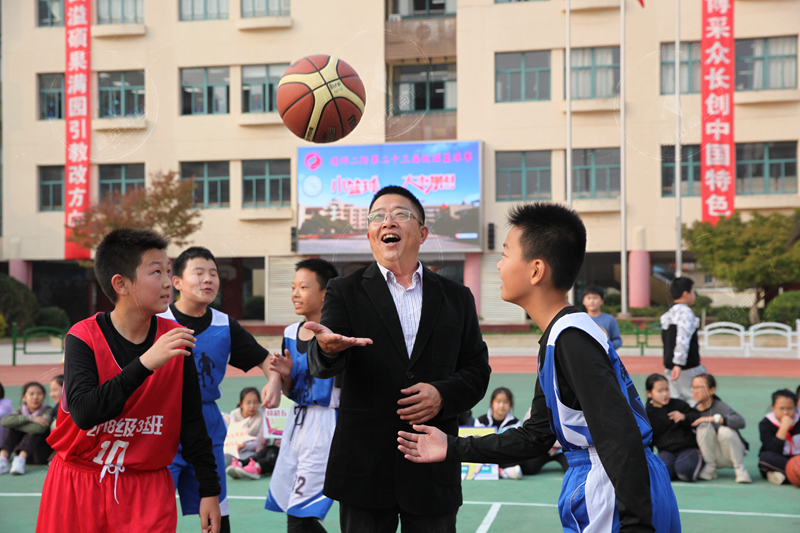 通师二附校长张洪涛为学校篮球赛揭幕跳球
