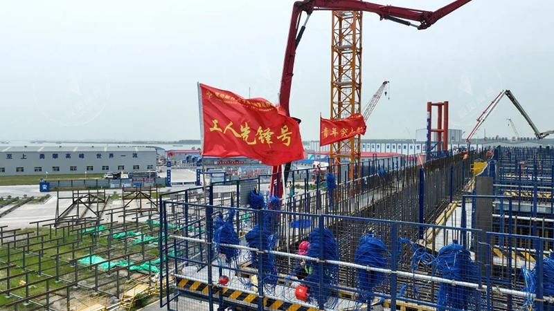 历战61天,张靖皋长江大桥北航道桥北锚碇沉井接高第二节施工完成