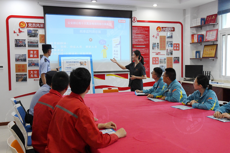 “高利息、高回报存在重大的风险隐患。咱们工人挣的都是辛苦钱,千万不要轻易把自己的资金转账给不明账户。”在洋口港液化码头G3操作平台上,如东出入境边防检查站民警朱鹰鹰用通俗易懂的语言,详细讲解了电信诈骗、集资诈骗等多种诈骗手法,叮嘱工友们如遇可疑情况应及时报警。“天上不会平白无故掉馅饼,一夜暴富肯定最终血本无归,蝇头小利咱坚决不碰!”液化品码头工作人员钱国涛说。