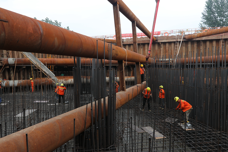 北沿江高铁启东段最大跨度连续梁主墩承台首次顺利浇筑