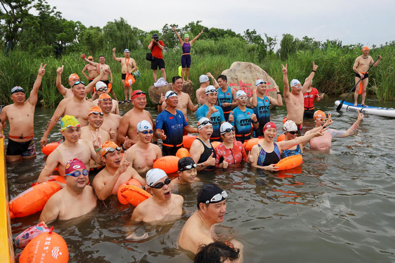 1800米户外游泳抢滩赛在海门区謇公湖水域举行