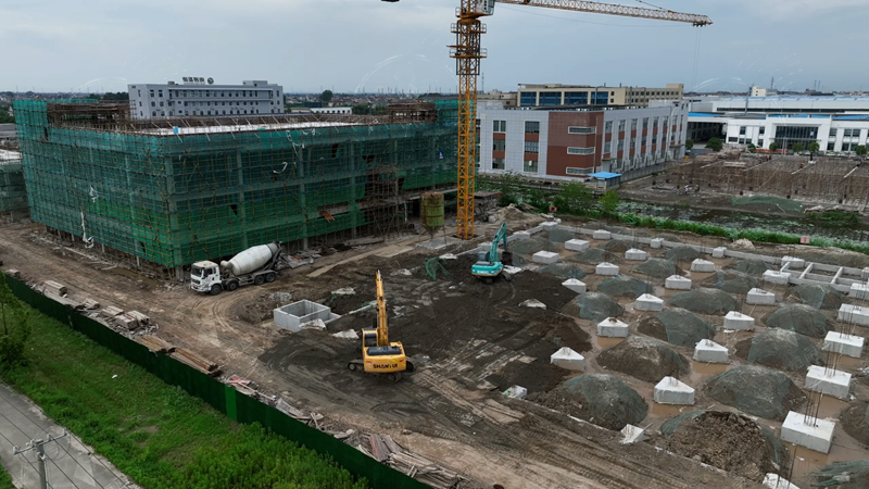 在正余镇的振康机械年产10万台精密RV减速机项目建设现场,装卸车装满建渣、建材来回穿梭,挖掘机不断地开拓、平整场地,工人们赶进度、争工期,为施工建设挥汗如雨,不断刷新施工“进度条”。现场项目施工负责人葛云峰介绍,该项目是国家级专精特新项目、省重大项目,总投资10亿元,于今年3月开工建设,当前主体建筑已经封顶。