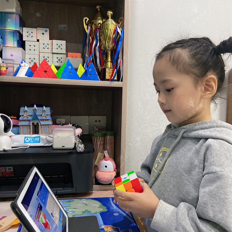 魔方复原是一个同时考验眼、脑、手三种能力的竞技活动。“上课的时候老师提出一个比较有难度的问题,曹岂娴手举得最快,回答得也最好。我想这跟她学习魔方这么多年,肯定是脱不开关系的。”曹岂娴的班主任程子晋介绍,老师发出任何一个指令,曹岂娴都能够快速做出反应,思维特别活跃。