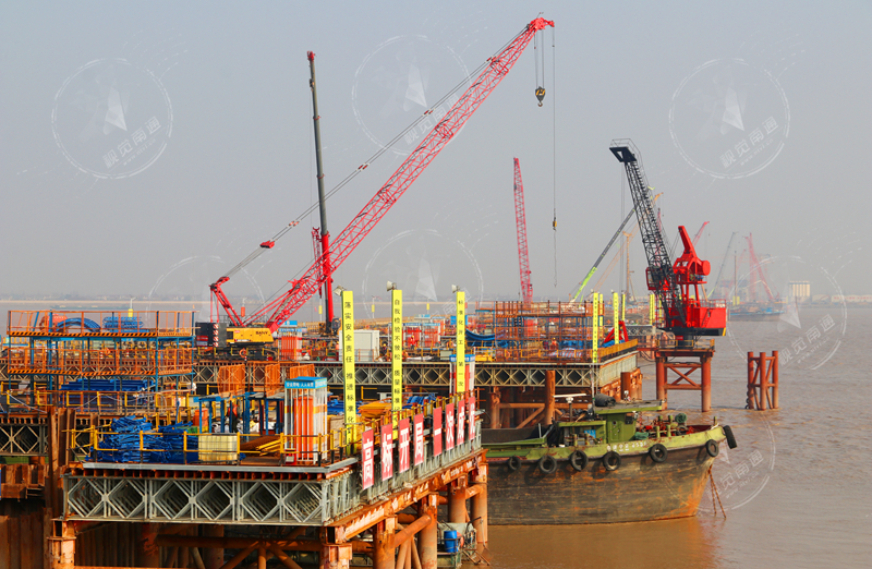 记者从中国铁路上海局集团有限公司获悉,11月27日12时30分,在长江北支崇启公铁长江大桥3号主塔墩施工现场,随着最后一车混凝土注入主塔墩围堰F4隔舱内,标志着由沪杭客专公司建设管理,中铁大桥局承建的世界最大跨度双塔双索面公铁两用无砟轨道斜拉桥——崇启公铁长江大桥首个主塔墩水下混凝土五次封底全部完成,大桥基础施工取得阶段性进展。