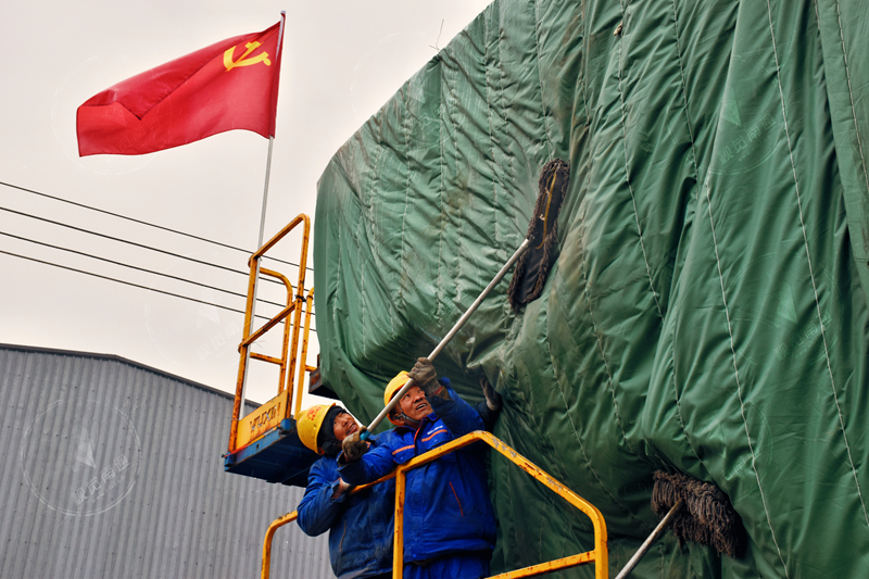 箱梁是大跨度桥梁的常用结构形式,箱梁预制过程中的保温非常重要。提梁机的发动机室也盖了一层“棉被”。“天太冷了,避免水箱结冰。”架梁区负责人李程说,发动机室还加了发热丝,铺了一层“电热毯”,即便如此,也花了半小时预启动。