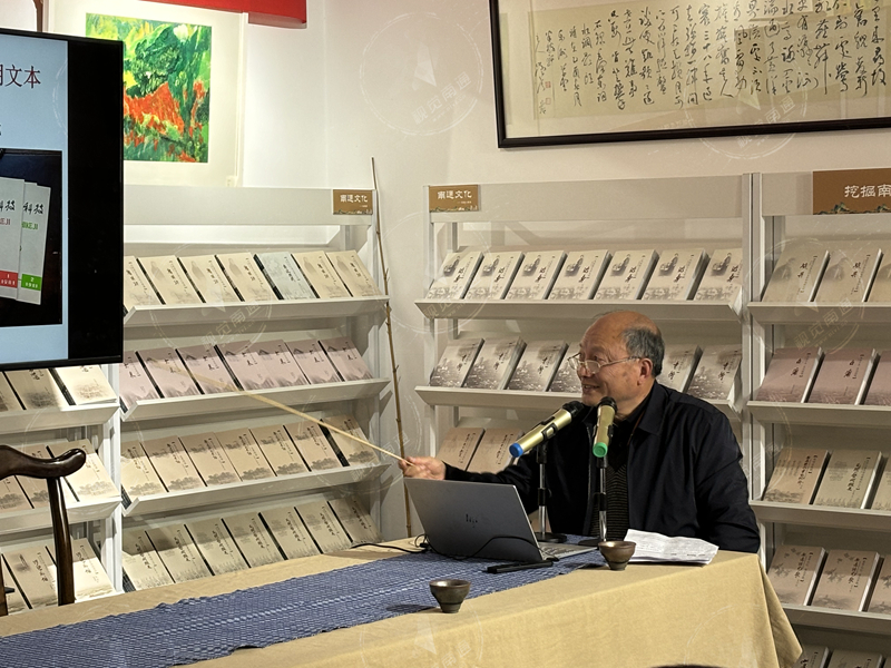 当天,首期读书活动——“江海孕育的宝地”《南通成陆》读书会开展。《南通成陆》一书的校补者陈炅,向读者介绍该书的出版过程,讲述研究南通形成的意义,揭秘江海孕育的宝地——南通的成陆过程。