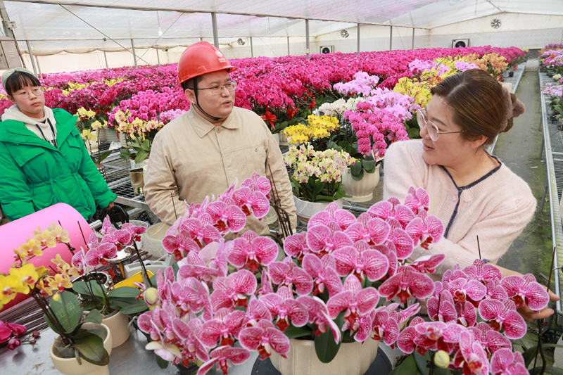如东县掘港街道余荡村的居家园艺中心蝴蝶兰培育基地内,30台恒温在26℃的空调正飞速运转,循环风扇和风机也交替着隆隆作响,7000多平方米的电气智能温室大棚内各种颜色的蝴蝶兰花开正旺,今年春节期间,基地预计将有14万余株蝴蝶兰上市,销往江浙沪等地。
