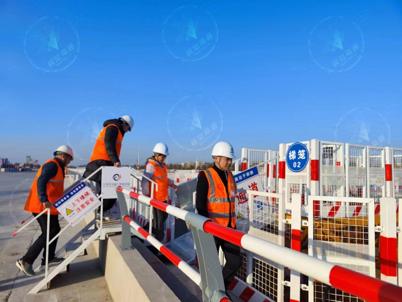蔡福全(右1)带领监理人员在工作井深基坑安全质量巡视
