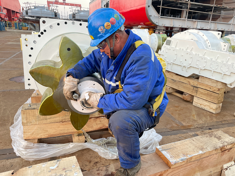 走进招商工业海门基地,每个项目上都有员工值守、忙碌。据基地有关负责人介绍,目前他们在手订单饱满,有46艘,总价值超350亿元人民币,主要产品有PCTC、FPSO及模块、LNG、风电船和风电运维船等。2月13日后,招商工业海门基地每天有300到500人加班,为节后复工复产作准备,今年基地将冲刺百亿目标。