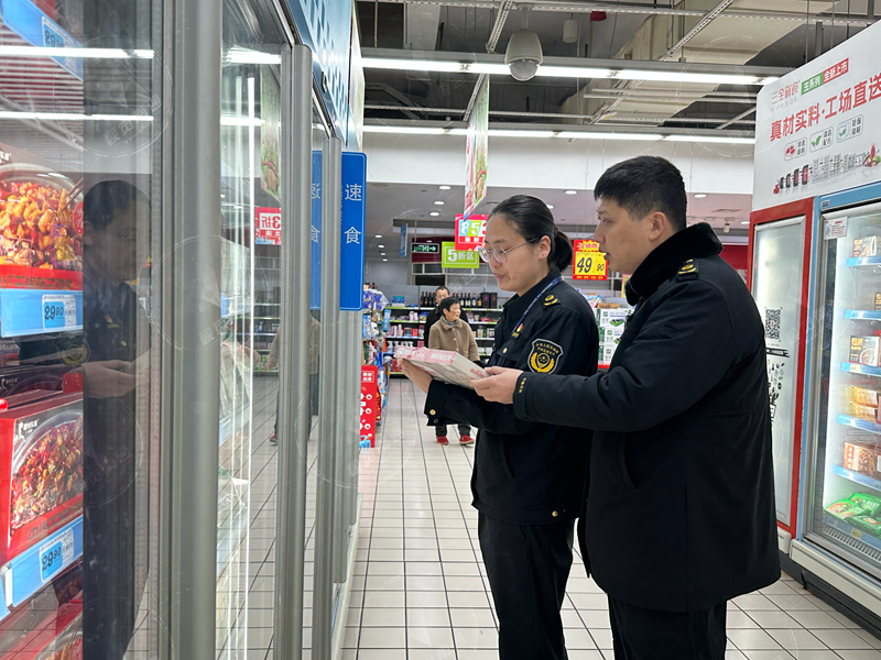 央视315晚会曝光了“槽头肉”预制菜事件,引起广泛关注。涉事产品是否流入南通市场?晚会结束后,崇川区市场监管局立即组织执法人员对全区肉类生产企业、小作坊、大型商超、批发市场以及可能会使用预制菜的餐饮店进行了全面摸排。16日上午,该局执法人员来到辖区部分商超展开实地检查。