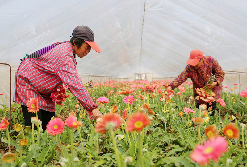 园区负责人虞国辉今年53岁,有着30余年的种植经验,因看中土山村富硒土壤这一优势选择了这里,“现有86个大棚,只要控制好温度、做好病虫害的防治,非洲菊一年四季都可以采,一株苗的花期4至5年。”