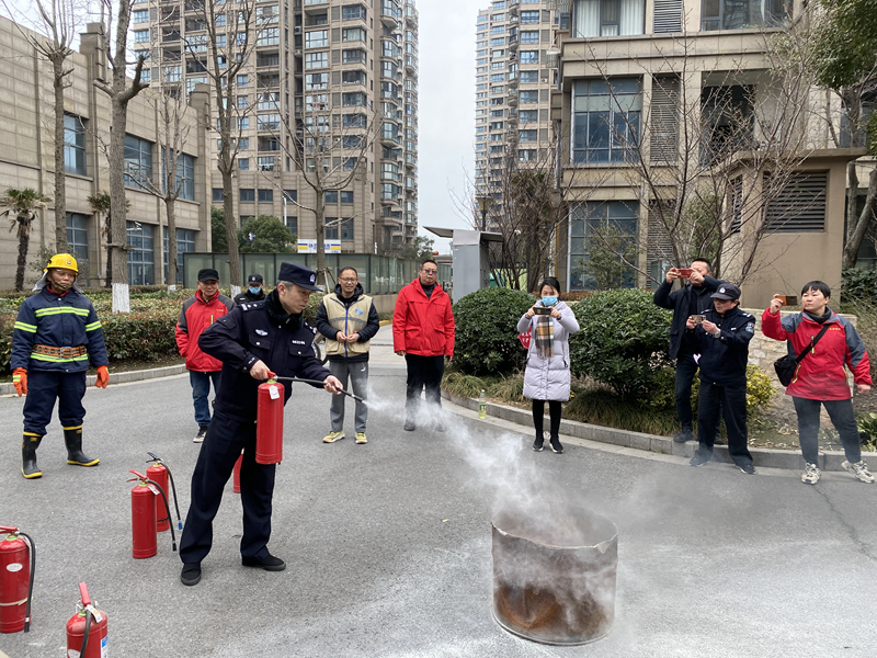 “大家不要惊慌,弯腰低头,用湿毛巾捂住口鼻依次从楼梯向下疏散。”随着社区工作人员拉开烟雾弹,消防演练正式开始。演练模拟小区某住宅楼底层突发火灾,小区物业在接到烟感报警后,迅速通知附近巡逻人员到场核实,确认火情后立即启动消防火灾应急处置预案并拨打119报警。整个演练紧张有序,现场应急处置小组配合消防队员引导居民迅速疏散逃生。火情控制后,社区工作人员和小区物业有序清点疏散人群,并对“伤员”开展救援行动。