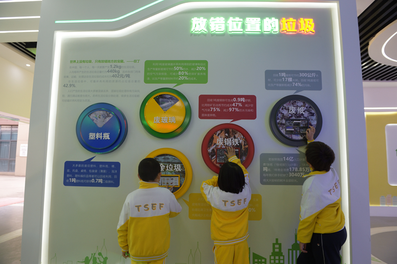 在基地中,队员们围绕生活垃圾现状,为什么要分类、垃圾怎么分类、垃圾去哪儿了等查看了功能厅和宣教区,文字、图片、影视、互动游戏等多种可视化手段呈现了垃圾分类知识,给大家带来身临其境的沉浸式体验。