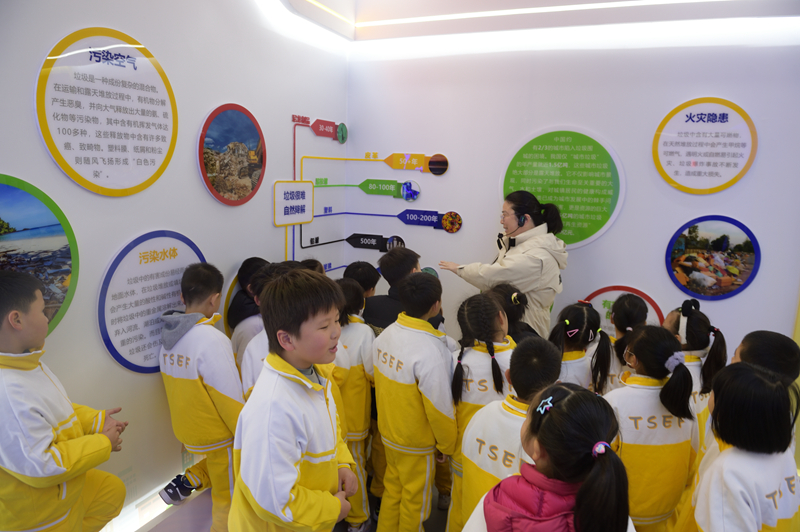 “请为你手中的垃圾找一个合适的家。”展馆利用高科技声光电手段,讲述了“一个塑料瓶的重生、厨余的穿越、地沟油的洗白”,并通过视频、互动游戏等方式来展示垃圾的最后归宿,让队员们体验垃圾处理的奇妙。
