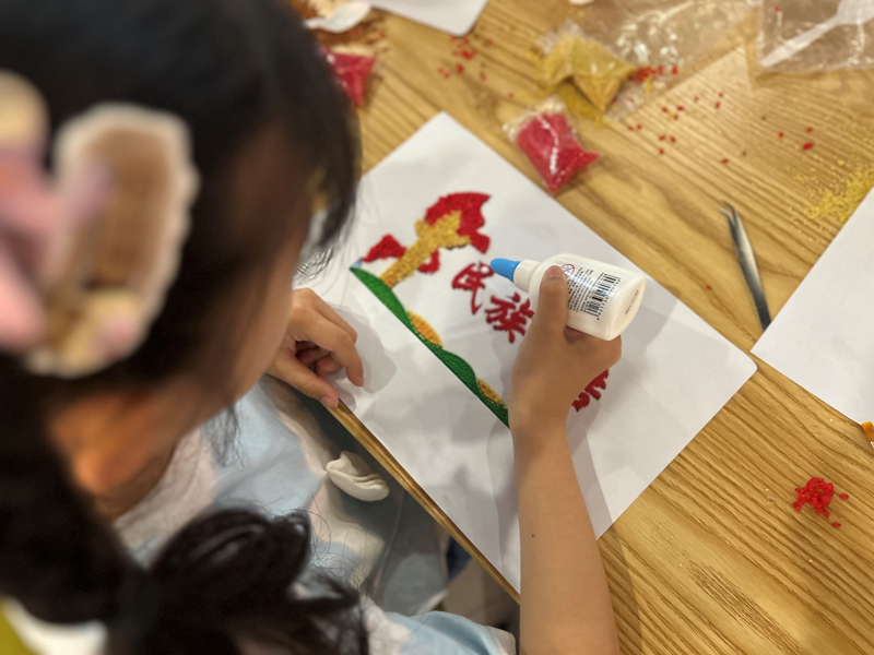 7月5日,实践队伍奔赴埭伍桥社区党群服务中心,为社区的小朋友开展非遗文化漆扇手工DIY活动。实践团的彝族同学王嘉豪现身说法,讲解了彝族传统工艺漆器的历史寓意和功能,带小朋友们领略了独属彝族的民俗文化。讲解结束后,在实践团成员的帮助下,小朋友们自己绘图案、选色彩,制作了美轮美奂,独属于自己的漆扇。