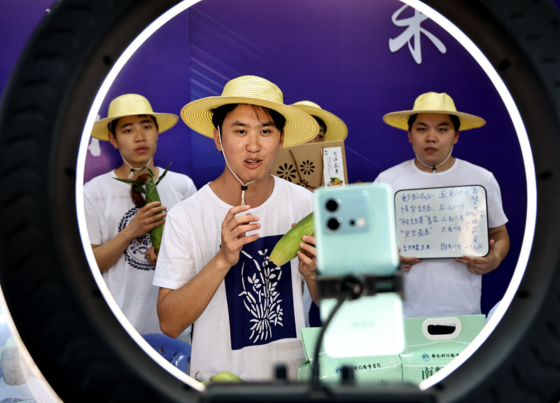 同时开展的“云端点亮创新梦想 直播助力创业启航”直播带货活动,也成了大学生一展身手的舞台。“今天准备的羊角蜜、彩虹西瓜、贝贝南瓜等,都是我们学校薛窑基地培育的农产品。”南通科技职业学院学生戴逸轩介绍,彩虹西瓜皮薄肉多、口感脆甜,格外受欢迎,刚开播没多久,已经有几十名粉丝下单了。