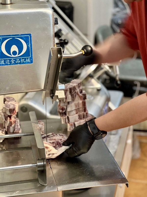 然而,干式熟成技术的掌握绝非易事。陈鑫解释,牛在屠宰后的几个小时里,肌肉组织的生化条件仍旧发生着变化,糖酵解作用最先发生,形成尸僵,其代谢物乳酸会显著影响肉的pH值、持水力、嫩度、肉色、口感等肉质指标。因此,在肌肉转化为食用肉时,解除僵直以及组织蛋白酶等生化变化的熟化过程尤其重要。“长时间的干式熟成造成水分损失,也使得风味更集中和浓郁。”陈鑫强调,至少需要4周以上的时间,干式熟成牛肉才会展现其风味的独特之处,但时间太长,水分流失太多,肉质损耗也会随之增多,“熟化”过头同样也会影响牛肉的口感,甚至导致腐烂变质,这其中的“火候”掌握相当精妙。