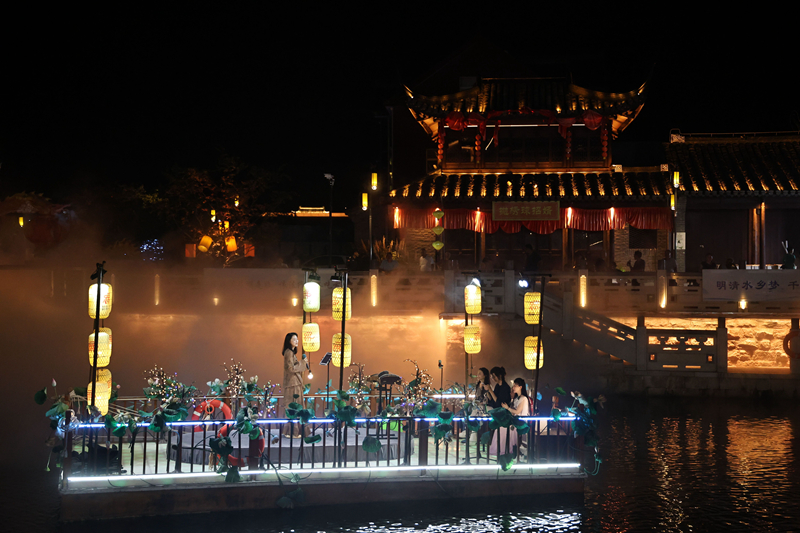 8月24日,“约‘汇’栟茶 潮玩古镇”不夜栟茶系列活动在栟茶古镇精彩上演,现场包含花船演艺、少儿文艺展演、街头游乐等多个活动,让市民游