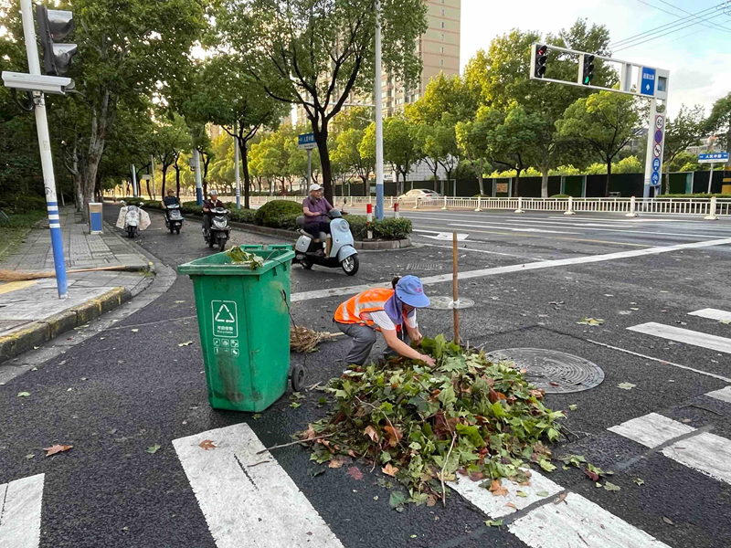“此次台风过境,1700名环卫工人全员出动,分布在城市的各个角落,在保证自身安全的前提下清理树枝、疏通窨井口、清扫路面上的树叶和垃圾。”