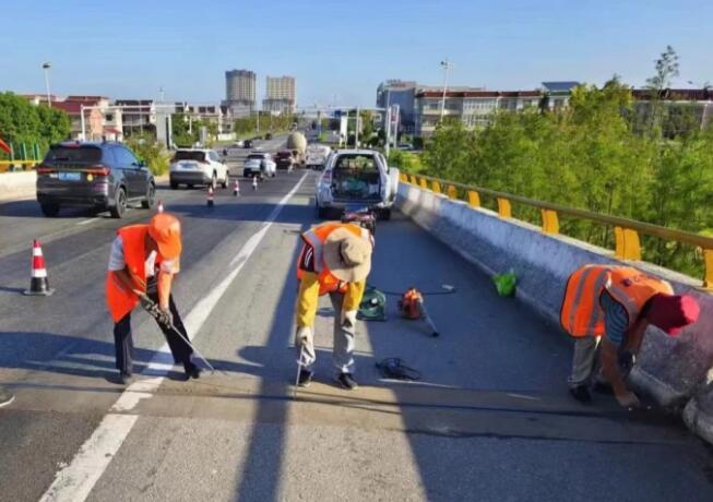 海门区2024年县道中小修日前正式进场施工,项目总投资约1000万元,计划于年底前完工。截至23日,施工单位已完成对新中河桥、正余大桥2座桥梁的伸缩缝自流平修复,剩余5座桥梁的伸缩缝维修也将在本月底前完成。