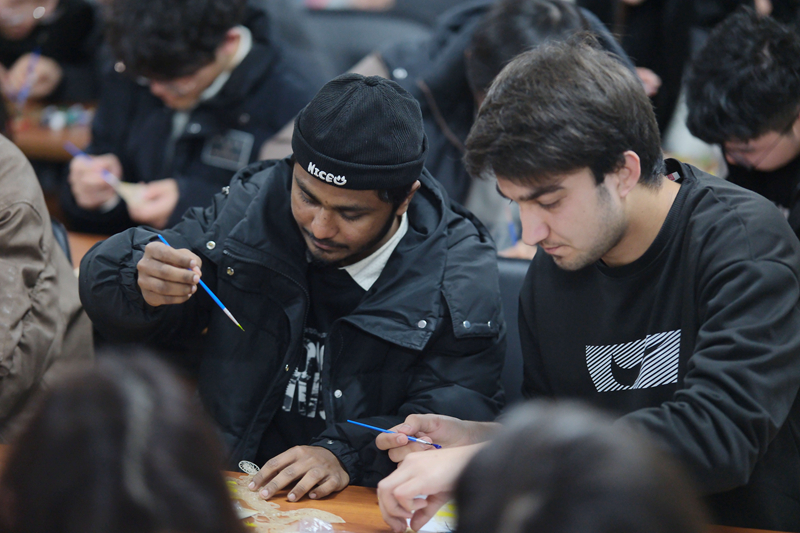 皮影戏是中国古老的民间艺术形式,集绘画、雕刻、表演、音乐等多种艺术于一体,被誉为“电影的鼻祖”。活动现场,汪虹宇以生动形象的语言,向大家介绍了皮影戏的起源、发展历程、艺术特色以及文化内涵。随后,在他的指导下,中外师生们兴致勃勃地动手绘制哪吒皮影人物。在纯牛皮的传统手艺中,学习技艺、体验乐趣,感受那份匠心独运的温度和魅力。看着亲手制作的皮影作品,中外师生觉得既新奇又成就感满满,一个个拿出手机拍照打卡,分享给远在他乡的家人朋友。活动的最后,汪虹宇和团队成员现场带来了经典皮影戏《哪吒闹海》的精彩表演。幕布上,哪吒、龙王、太乙真人等角色在光影交错中活灵活现,故事情节跌宕起伏,引人入胜。