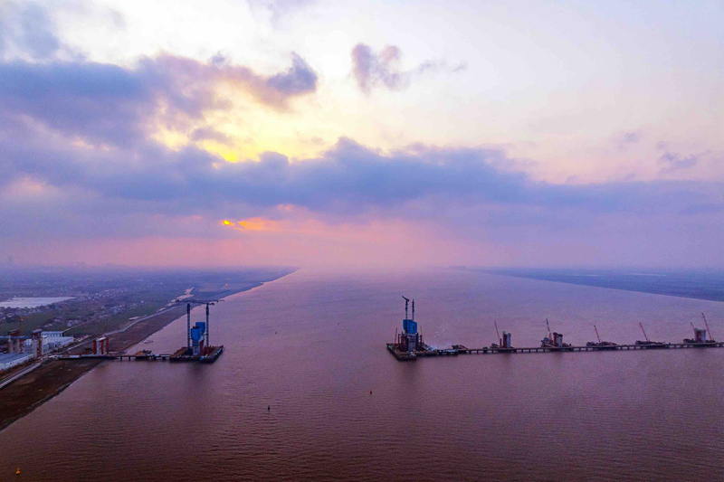 崇启公铁长江大桥主塔突破60米高度 计划2026年初全线贯通
