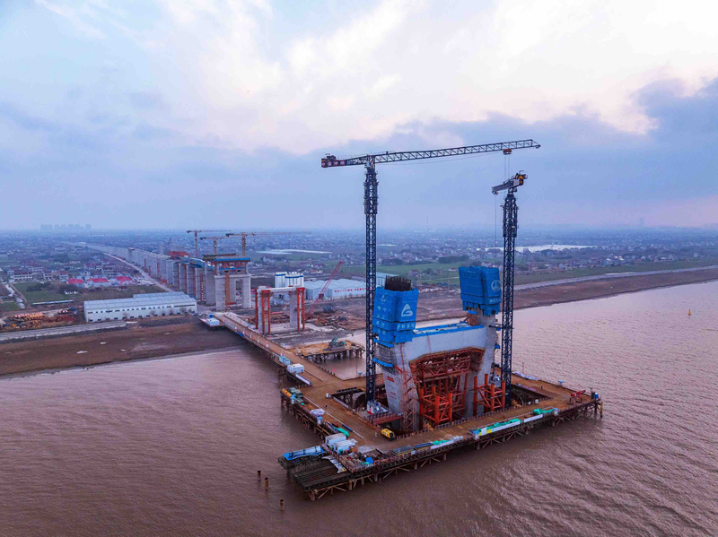 崇启公铁长江大桥主塔突破60米高度 计划2026年初全线贯通