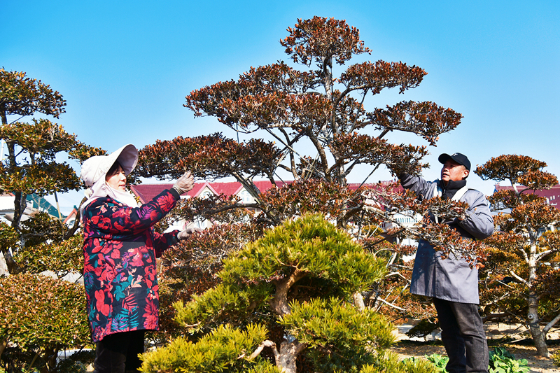 “‘如派盆景’是中国盆景七大流派之一,以‘云头、雨足、美人腰’的特色著称,大家直播间下单就可以购买。”镜头前,花木老板郝昌桂摇身一变,当起了“盆景带货主播”,热情地给直播间的消费者讲解自家的盆景。