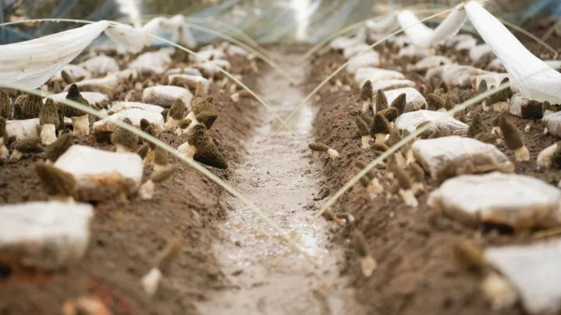 成熟的经验往往来自“惨痛”的教训。2021年,陈杰经人介绍,从浙江省农科院学习到羊肚菌种植技术,初步掌握了基质调配、子实体培育、菌种选择等关键要点。在他的细心“照料”下,当年试种的半亩大棚羊肚菌取得了1.6万元的可观收入。他计算着,如果是一亩地,产值甚至能超过3万元。这一巨大的收益潜力让陈杰心动不已,他决定扩大种植规模,于是在2022年下半年,他将大棚扩建到30亩、62张棚。“还是按照21年的种植模式操作,结果当年的气候和21年大相径庭,气温忽高忽低,冬季寒潮冻死了四分之一,春季突然的高温又给热死了四分之一,产出直接‘腰斩’。”陈杰回忆道,当年亩产直接由1000斤缩水到500斤,算上投入、人工成本,亏损了不少。