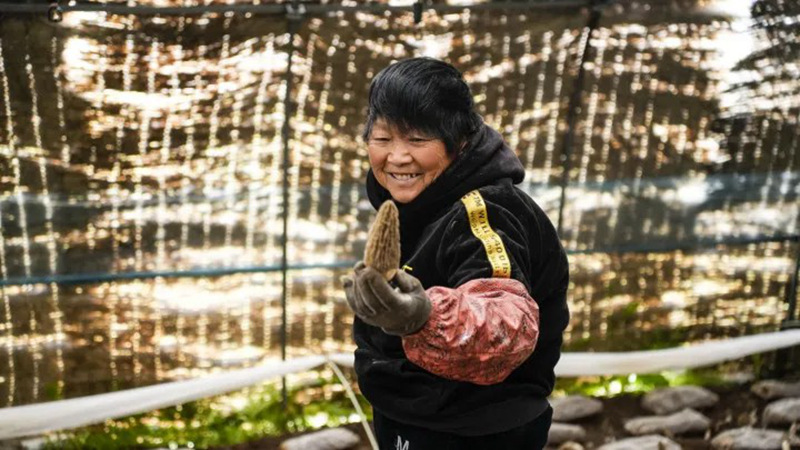 面对这一打击,陈杰没有气馁。2023年,他前往山东考察学习,积极向当地种植户“取经”。“你看,这个草帘就是我的学习成果。”掀开大棚最外层的黑帘,记者看到了中间覆盖着的一层草帘,“羊肚菌生长最适宜的温度在6℃~18℃,草帘不吸热,还有一定保暖作用,气温高的时候,棚内温度不会极速上升,气温低的时候,草帘就像被子,能很好地锁住温度,不让羊肚菌受冻。”陈杰笑着说,自以为学到了全部“精髓”,当年11月,他又兴冲冲地放开手干,结果到次年3月采收期时,羊肚菌产量依旧未能达到预期的1000斤,“查了好多资料,也咨询了专家,发现羊肚菌忌连作,同一地块种植两茬后易出现长势变弱、病虫害发生加剧、产量和品质下降等问题。”