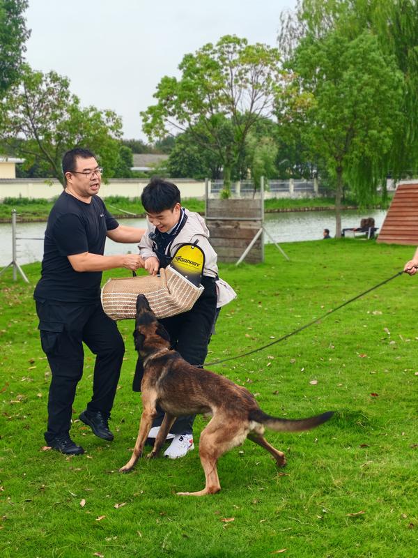 活动的互动体验环节更是让同学们感悟深刻。在训导员的专业指导下,部分师生代表穿上防护装备,扮演“假想敌”参与扑咬训练。尽管有厚重防护加持,警犬扑咬时的力量与果断仍让体验者备感震撼。“这不仅是一次新奇的体验,更让我明白,每一次成功的警务行动背后,都是警犬与训导员千锤百炼的默契。”参与体验的同学感慨道。