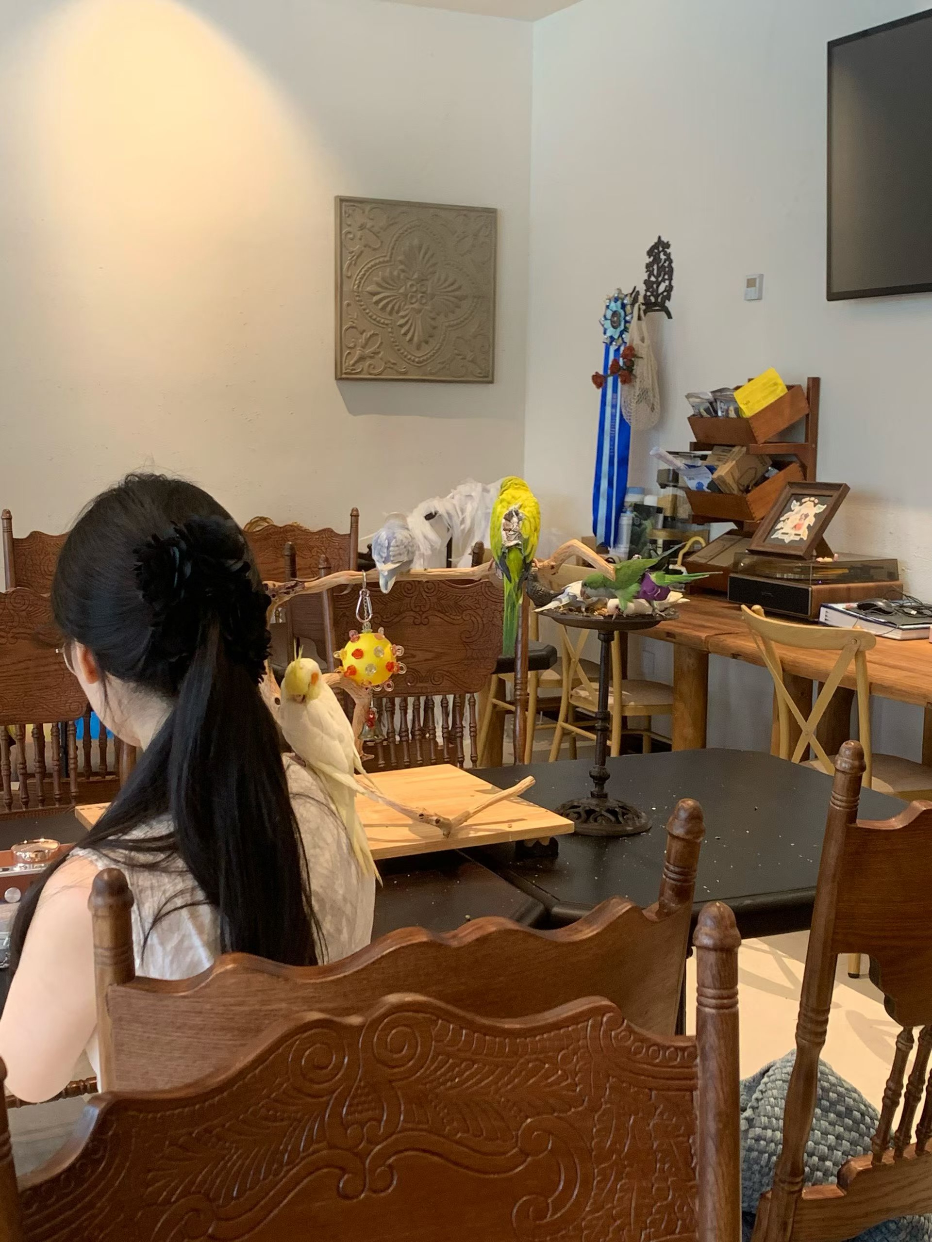 “南通咖啡店虽多,但缺乏差异化。”叁疯直言,瞄准市场空缺,她从之前带着小鸟参与婚礼策划、亲子沙龙活动的经历中受到启发,决定将乖巧亲人、有灵性的鹦鹉作为店内的“招牌”,同时店内还会每月更换主题装饰,源源不断吸引客流。“我们希望打造一个宠物和主人的社交空间,让都市人找到片刻安宁,像小鸟一样自由快乐、放松身心。”
