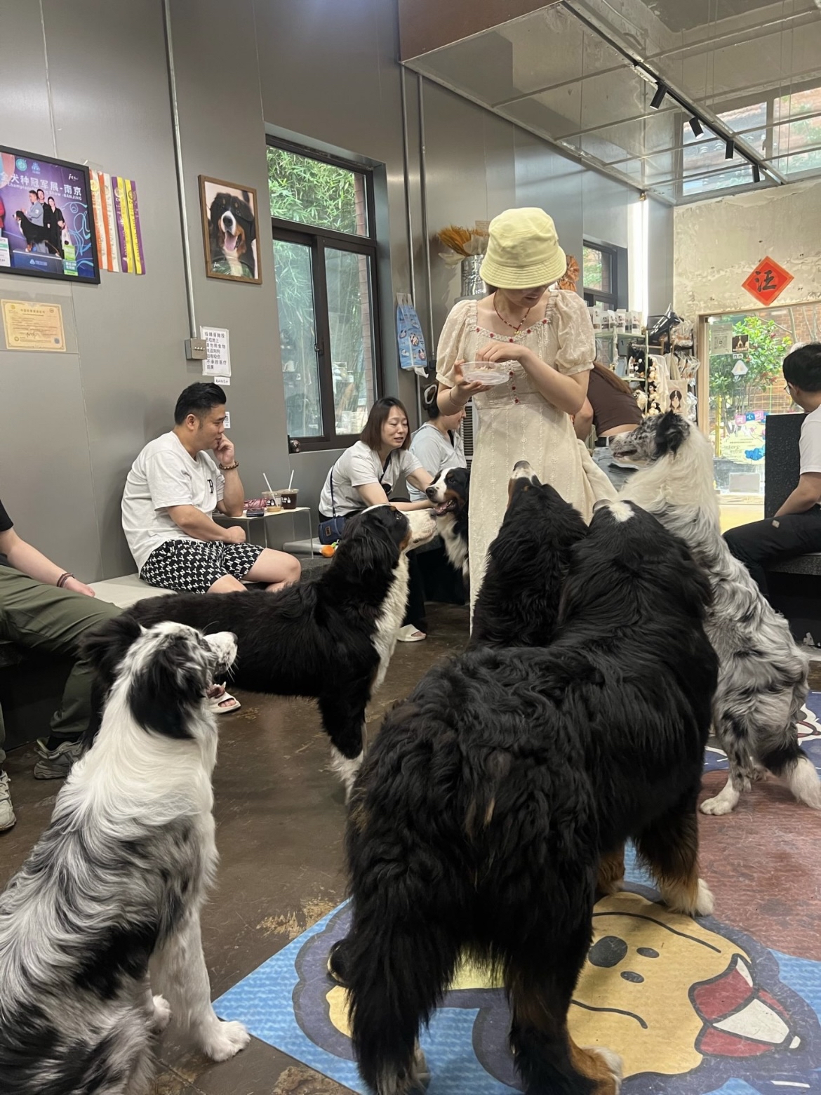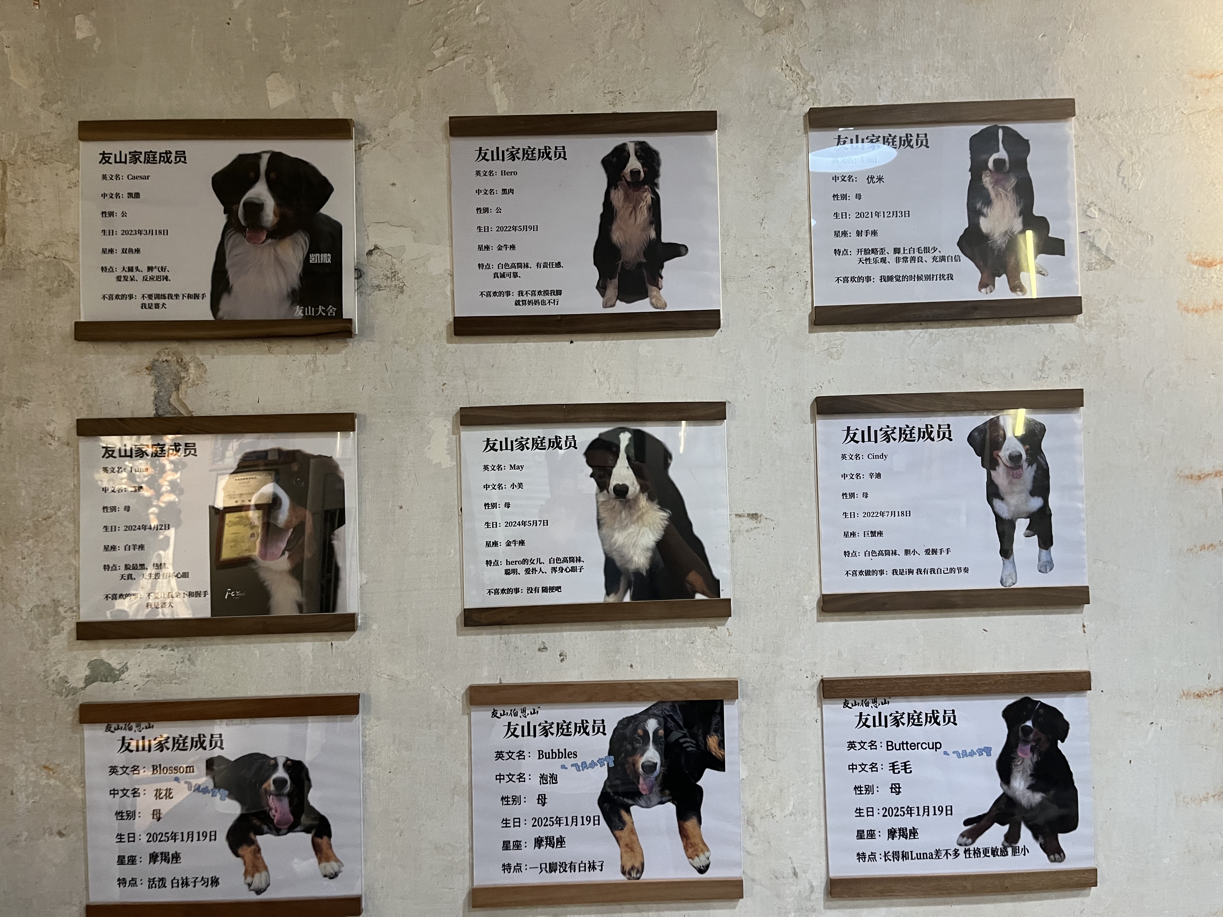 2024年11月开业至今,这家狗咖从最初拥有6只伯恩山,发展到如今拥有涵盖自繁育与海外引进的11只伯恩山,成为本地养宠人士与爱狗者的“秘密基地”。