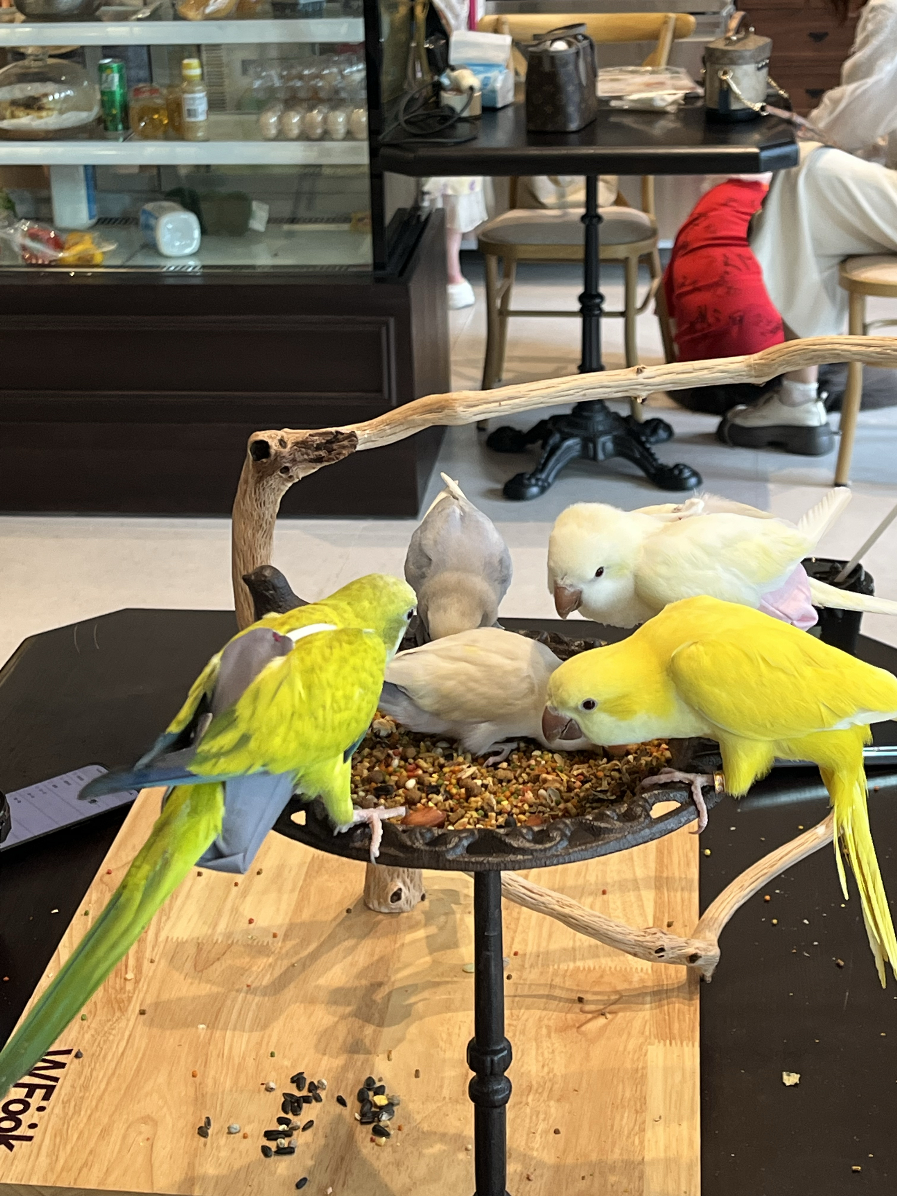 “小太阳鹦鹉的放飞能力很强,它可以跳到你手上;和尚鹦鹉学舌能力强,也比较呆萌,还会跳求奶舞……”叁疯是鸟咖门店的店长,她对每一只“鸟员工”的生活习性了如指掌。据她介绍,门店今年9月投入运营,目前共有近20只鹦鹉,主要为玄凤、和尚、牡丹等家养型鹦鹉品种。“刚刚过去的国庆假期期间,还有来自盐城、无锡、苏州、上海等地的客户奔赴而来,店里位置火爆,还需要提前预约。”