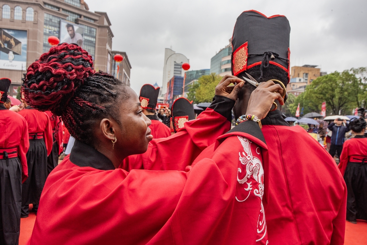 10月18日,一场融合汉文化特色与国际交流意义的集体婚礼在江苏南通濠河之畔举办,来自“一带一路”共建国家和地区的20对新人身着传统汉服,以汉式婚仪许下百年之约。