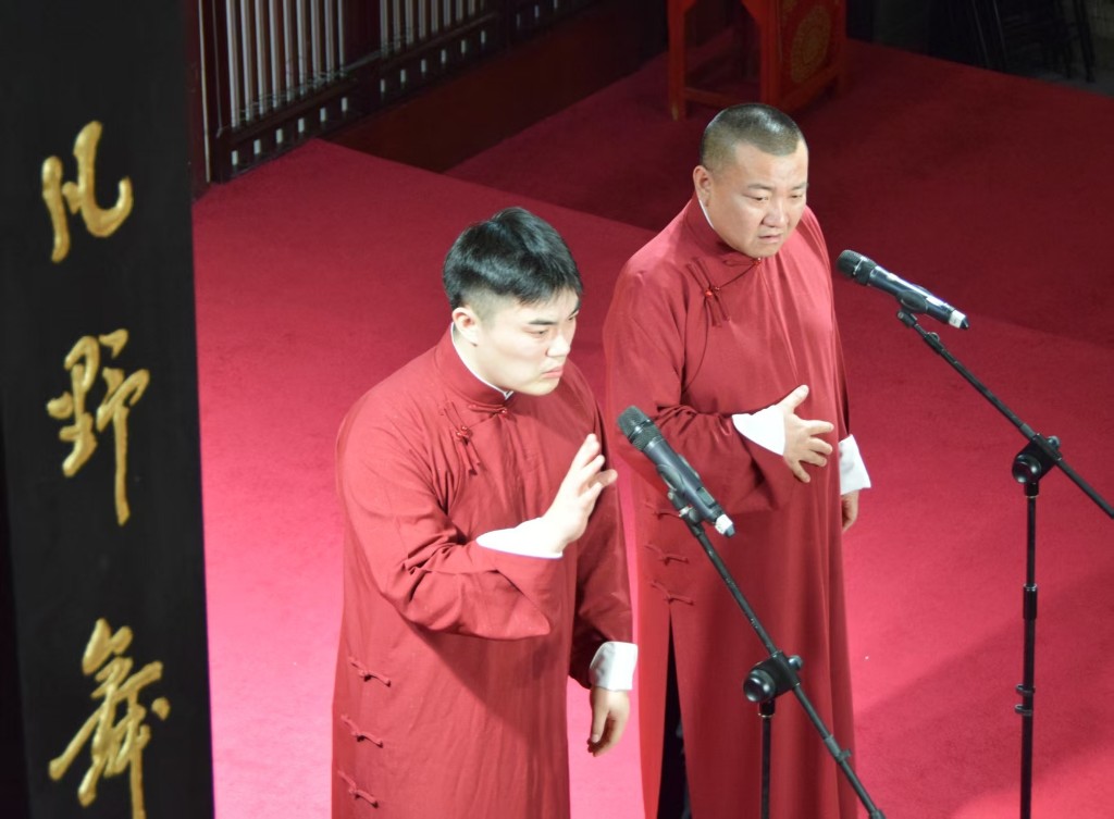 演出在相声《欢声笑语》《语言的艺术》中拉开序幕,表演者鸿义和木木以幽默的语言瞬间点燃现场氛围,展现了相声艺术“欢声笑语传万家”的独特魅力。随后,扬州评话《陈毅过江》登场,表演者陈祝武以地道的扬州方言、精湛的表演技艺,生动再现了陈毅过江的经典故事,让观众沉浸式感受扬州评话的韵味;吴佳澎、季逢春带来的相声《我把山歌捧出来》,将山歌元素与相声艺术巧妙融合,呈现别样艺术风格;传统评弹开篇《赏中秋》由曹轶、倪晨演绎,婉转的唱腔、典雅的韵味,带领现场观众领略江南评弹的细腻与唯美。活动尾声,快板《红柳楼》表演者孙啸以明快的节奏、清晰的口齿,将作品内容精彩呈现,更是赢得现场观众的阵阵掌声。